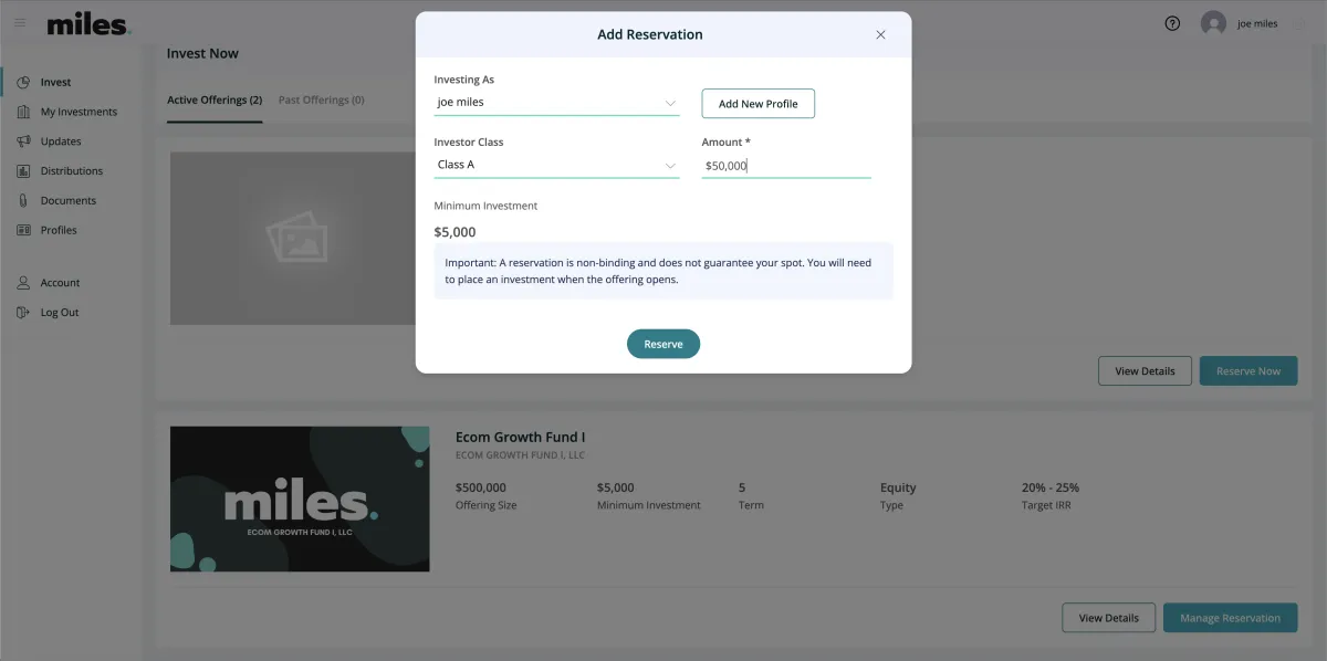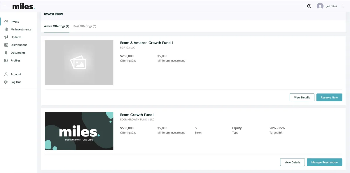 Interested investors can review opportunities and connect directly with Miles Group to discuss opportunities.